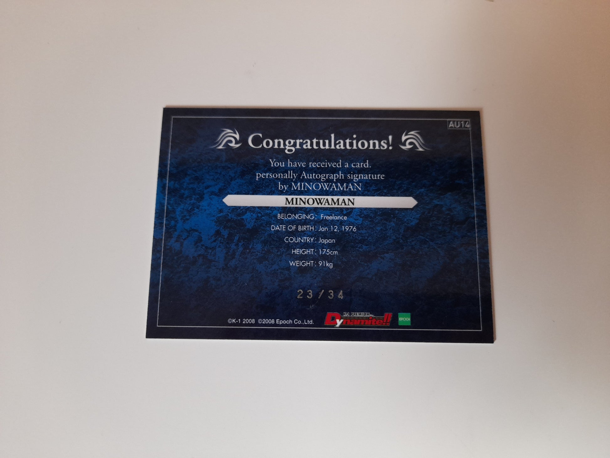 2008 Epoch K-1 Premium Dynamite Trading Card - Ikuhisa Minowa Autograph Card - #AU14 - 23/34