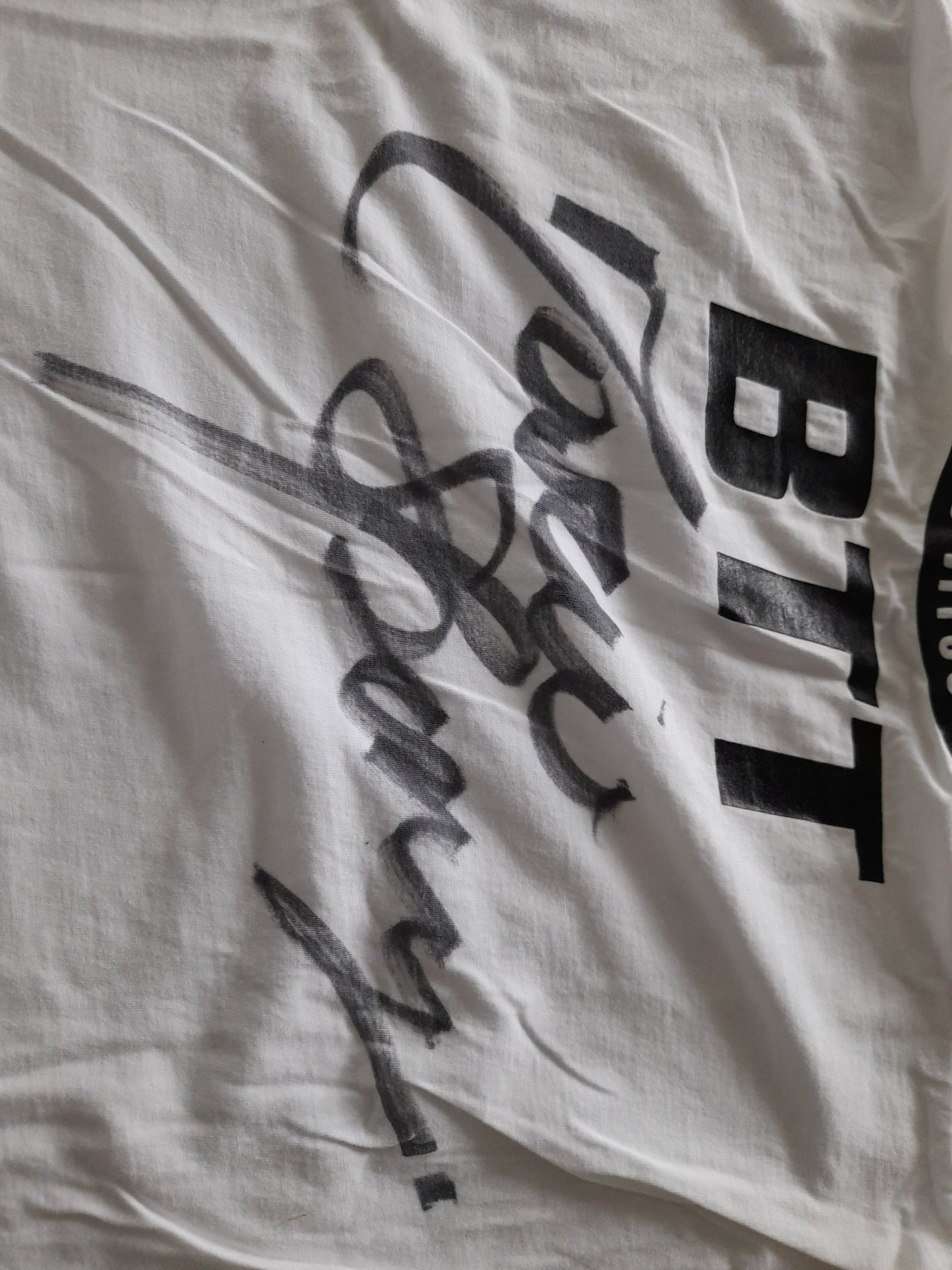 big signature on back of shirt