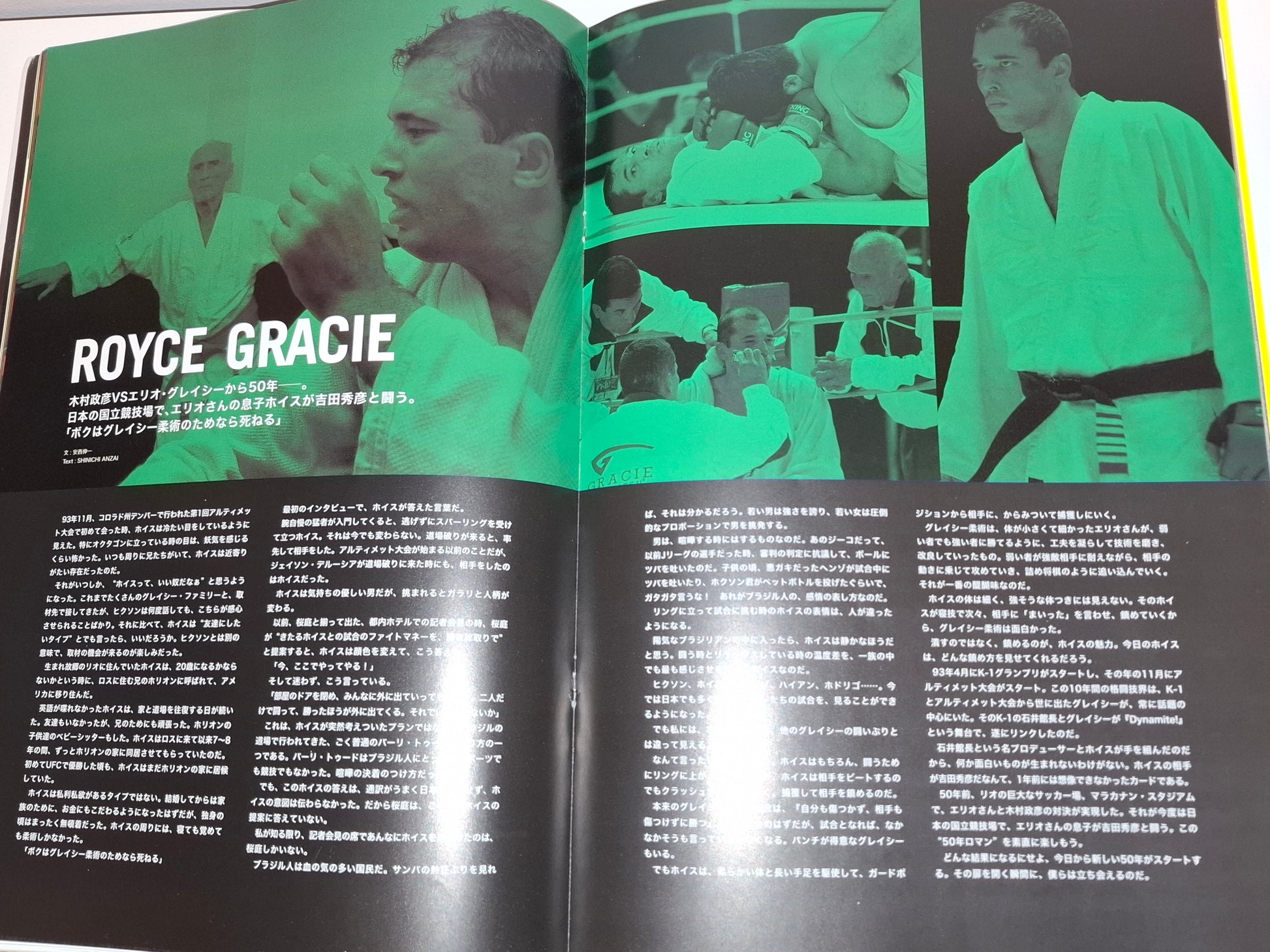 The other famous event was Hidehiko Yoshida vs. Royce Gracie, a "special rules match" with both fighters wearing keikogis and with limited striking allowed, billed as a "rematch" of Masahiko Kimura vs. Hélio Gracie, which had happened 50 years earlier. The match would end controversially as Gracie was caught in a sode guruma jime ("Ezekiel") chokehold from the mount. The referee felt Gracie passed out from the choke but was unable to see his face, still he awarded the victory to Yoshida by knockout. Royce stood up and protested the win, claiming he was neither unconscious nor tapped out and demanded the referees to declare a tie or rematch, the squabble soon resulted into a full on brawl between the corners of the two fighters.