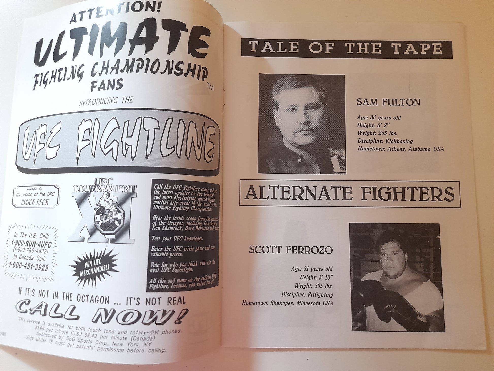 Vintage Ultimate fighting Championship Official event Program